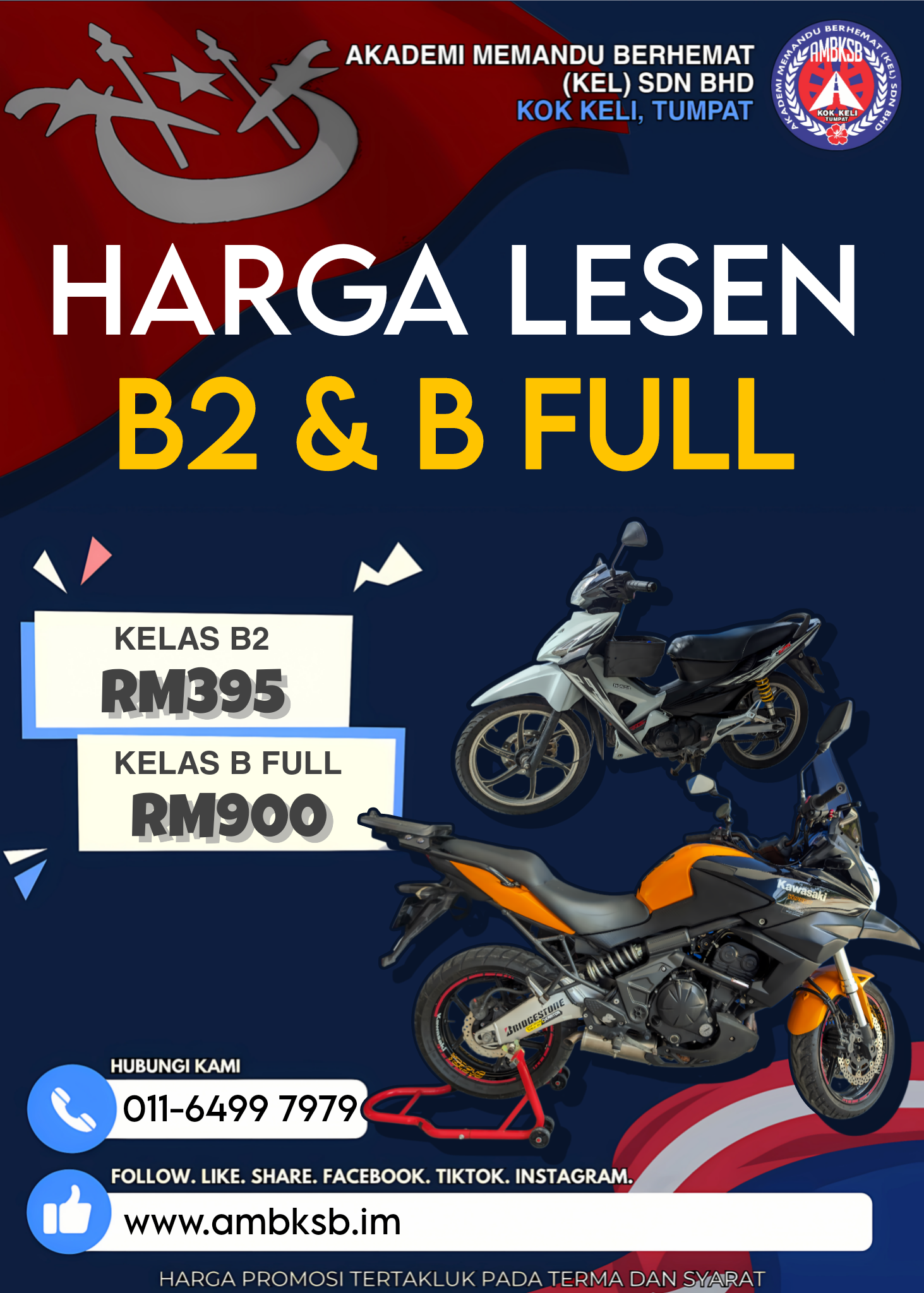 ● B2 Kurang 250cc / B (Full) Lebih 500cc
